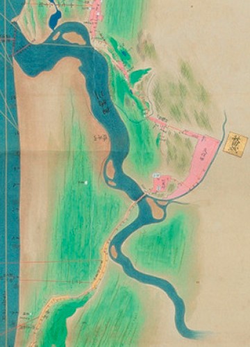 一往、いまの河口部方向も撮影はしてみたが、古絵図と現地図を見比べるかぎり、だいぶ埋め立てもすすんでいるようなので、当然むかしの面影はない。
