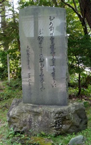 写真の鳥居をくぐった右手には、見た目にいまだ新しい菅江真澄の歌碑があり、境内には枝社として坂上田村麻呂が戦勝を祈願したという田村神社が存在する。