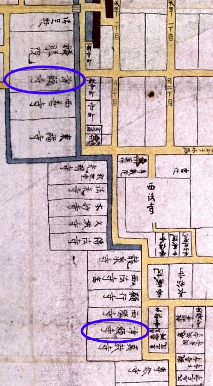 とみえる一方、念のためこれまでも確認につかっている「羽州久保田大絵図」には「浄願寺」としておなじ文字が二カ所みえてややこしい。いまの浄弘寺の位置(現在地から南へ約400mちょっと行った旭北寺町)にみえる「浄願寺」の文字は、別年代の地図と念のためひき比べたかぎり、ただの誤記と判断し無視した。