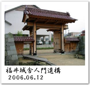 ![]() ■1.福井市宝永三丁目 福井市立郷土歴史博物館の西側部分。訪館時、特別展はあいにく開催されておらず、松平家史料展示室で「松平春嶽をめぐる女性たち」というテーマ展示のみやってました(写真左側の看板にはその旨の告知)。 1時間弱の時間をかけてジックリ館内を見学し、売店では歴代藩主の花押入クリアファイルを購入。コレはこの旅唯一の自分へのオミヤゲです。 | ![]() ■2.福井市宝永三丁目 博物館の敷地内に復元されている福井城舎人門の遺構。この門は福井城の北門にあたり、その外堀や石垣の部分をふくめて一部が再現されている由。木造の越前赤瓦葺、高麗門形式。 |