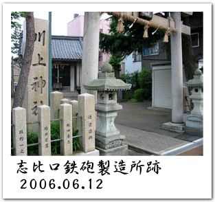 ついで顕彰碑からさらに東へ、松ヶ枝公園(山本条太郎翁誕生地碑)、岡倉天心郷家の跡碑、大山重寓居跡をへて、現在の川上神社[左写真]こと福井藩の鉄砲製造所跡に到着。