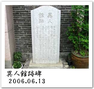 幸橋を左手にすぎ、中央三丁目の区画にはいると、やがて同方向にウィリアム=エリオット=グリフィスと日下部太郎の両像、および異人館の跡にいたる。明治初期、日本は西欧列強に比して立ちおくれた近代化を急ぐため、のちに「お雇い外国人」と称される技術者・教育者を大量にまねき、各分野の改革につとめたことは夙に著名だろう。そのさい外国人が滞在した館は異人館と称され、全国的にも史跡として残っている例は多い。