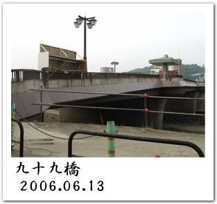 当時の九十九橋は別名「掛合橋」ともよばれ、北半分を木材、南半分を石材で造った何とも珍しい橋だったそうだ(ただし『日本山海名産図会』の絵よると、石材の部分は極短く描かれている)。