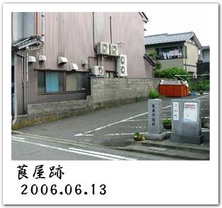 藩政時代の京町と塩町の跡をしめす浮き彫りの碑を二ヶ所へて、橋から北西に位地する旧山町跡こと莨屋の跡[右写真右]へ移動。莨屋は龍馬にとって最後の旅ともなった福井訪問のさい、三岡八郎との会談に利用した場所だ。遺構は明治三十五年(1902年)火災のため焼失したよしである。