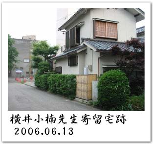 ついで異人館から数十秒、つまりは距離にして目と鼻の先、横井小楠先生寄留宅跡にいたる。同所設置の碑文によると文久三年(1863年)頃おもに滞在していた場所らしく、同年には龍馬もここを訪れたことはあったろう。また近藤長次郎が福井訪問のさい、ここを訪れたことがあったかもしれない。
