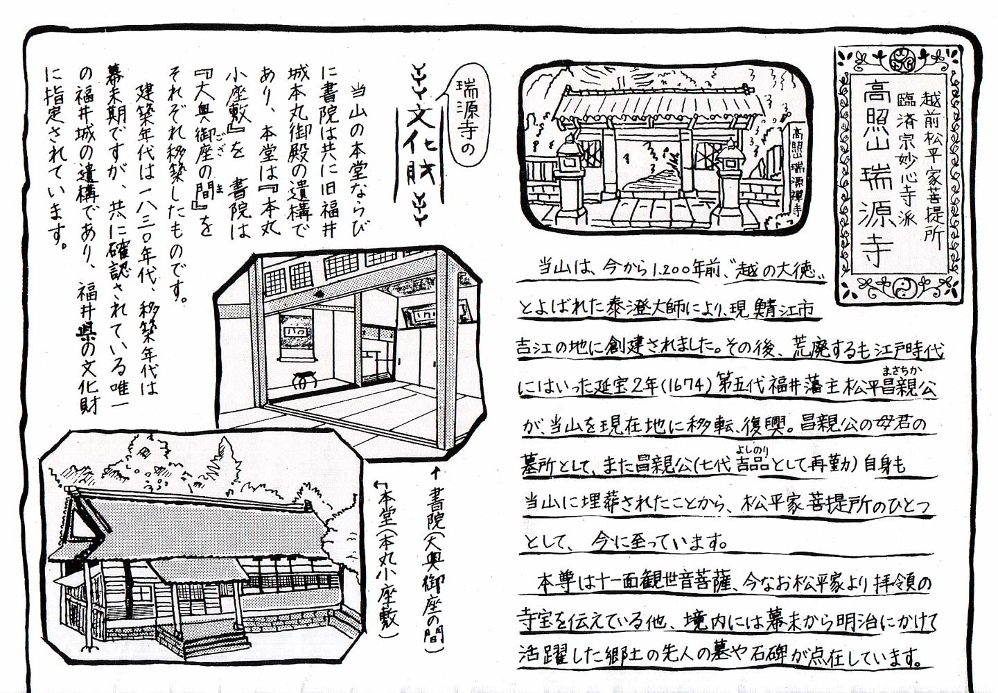 寺建物が福井城本丸御殿の移築物であることや、その修繕を控え、近々の調査がおこなわれることなど、堂内に招かれ説明をうける。わざわざ障子やフスマを一つ々々取りはずし、アレコレと説明してくれるさまには本気で恐縮いたしました(ちなみにそのさい頂いたプリントがこれ。折角なので転載しときます。→プリント上半分・同下半分)。