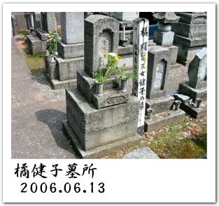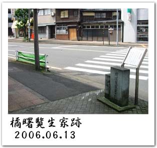 墓探しに手段をこうじているうち結構な時間(30分から1時間くらい)も経過したので、今度は足羽山への道を急ぎつつ、北へ迂回路をめぐり橘曙覧生家跡[右写真上]をへて、山裾の妙観寺にある曙覧三女健子の墓をもうでる。