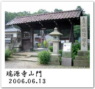 途中、今後の行動を考えながら歩いていたところ、電柱の住所表示にて寺を素通りしたことに気がつきUターン。たまたまの散歩途中とおぼしき御老人に道を訪ねて、左写真左の瑞源寺に到着。