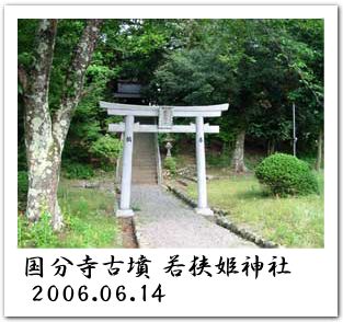 発掘調査によると寺院にしては瓦の出土が少なく、屋根などは瓦葺きではなかった可能性が高いとのことで、本来の寺域は方二町(230m四方)ほどあったよし。また円墳(国分寺古墳)を寺域内に取り込んでいる点が特徴としてあげられ、現在は若狭姫神社[左写真右]を古墳上に祭祀している。