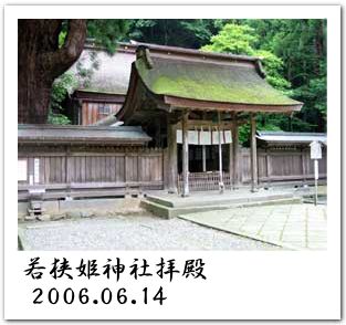 ついで35号線をさらにくだり、今度は下社の若狭姫神社[右上写真右]に到着。主祭神は海神オオワタツミの娘にして、ヒコホホデミノミコトの妻、若狭姫大神(豊玉姫命)。