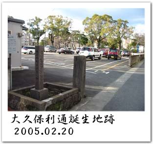 共研公園からやや北東の位置、京都市風にいうなら高麗橋ナポリ通り西入ル北側に「大久保利通誕生地」跡[右写真]がある。先に立ち寄った加治屋町にも「大久保利通君誕生之地」碑(大久保利通生い立ちの地)なるモノはあったが、誕生地という点で正確なのは高麗町にあるコチラの方。