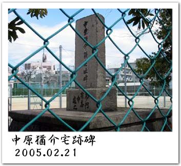 「そういえば昨日行った後醍院真柱出廬之地碑の近くにも四方限の顕彰碑なんてのがあったっけ。こっちとあっちじゃ大きさも段違だけど」と考えているうちに着いた場所が中原猶介宅跡碑[左下写真]。位置は甲南高校敷地内南側。できれば碑の近くで撮影をしたいところではあるが校内へ勝手に侵入するわけにも行かないので(ちょうど先週2月15日には大阪府でとある学校侵入事件が発生していたばかり)御覧の通りフェンス越しに碑を撮影する。