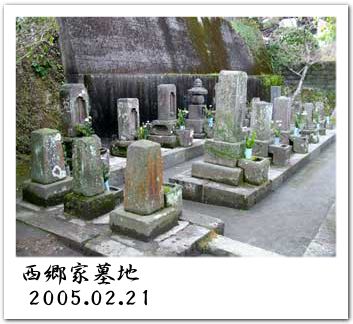 今度は薩英戦争の本陣「千眼寺」の跡をもとめて西田小学校に到着。ふたたび手もとの資料によると場所は西田小学校の隣、鶴丸高校の裏手としか書いていない。「何だかまた見つけられないような気がして来た」とあきらめムードのまま学校の廻りを2週半し、今度は西郷家の墓地へ歩を転じる(つまり探すのは諦めた)。
