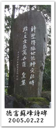 左の写真は霧島神宮敷地内に建つ徳富蘇峰の詩碑。手前勝手に読み下すなら「神聖降臨の地、乾坤定位の時、煌々至る霊気、萬古皇基を護らん」とでもいったところだろうか(「護」の文字はむしろ「葭」に見えるが、それだと意味が通りにくいので敢えて「護」と訓んでおく)。我ながら読解力はともなっていない、当てにはならん訓みだとは思う。