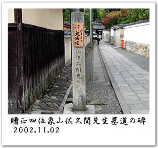 慈雲院から松代藩寺大法院にむかう途中「贈正四位象山佐久間先生墓道」と刻まれたとおぼしき石碑[右写真下段]を発見。一応、デジカメにおさめてはみたが紐で括りつけられているオジャマな木札に妙な不安をだく。