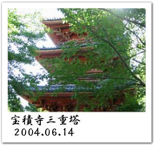 ■ 1.乙訓郡大山崎町字大山崎天王山の入口付近には比較的急な勾配がつづき、アサヒビール大山崎山荘美術館への案内を横目に、忠勇隊も在陣した宝積寺(通称:宝寺)まで道をのぼる。写真は山門から宝積寺境内右手にみえる三重塔。かつて、この足下には真木和泉ら十七名が「長州賊徒の墓」として葬られていたという。 |