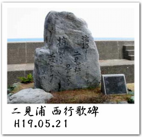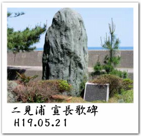 ついで神社から道をもどし、明治十五年(1882年)に我が国初の海水浴場としてひらかれたらしい二見浦海水浴場に到着。あえて「らしい」というのも、神奈川県大磯海水浴場(元幕府の蘭方医としても知られる松本良順の唱導により明治十八年開設)こそ、その嚆矢とされる例が多いので念のために付記してみた。